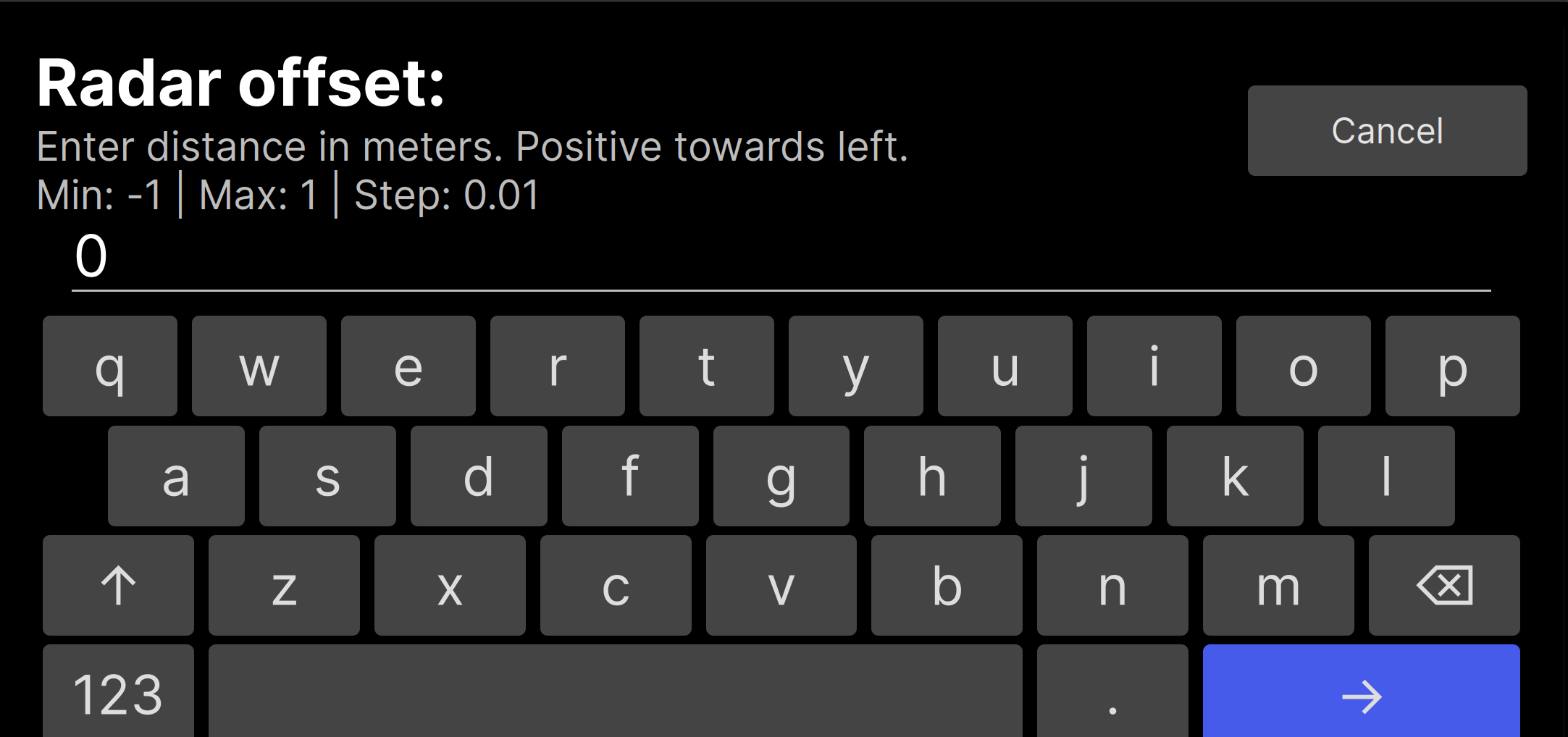 Editing numerical values in Tesla Unity settings page (2/2)