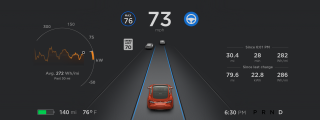 This view that is generated by OpenPilot on your IC uses the same API as the official AutoPilot. As you can see, LKA and ACC are engaged with a target of 76 MPH max. The cars shown are the ones detected by OpenPilot using cloud data from a Tesla Bosch aftermarket radar.