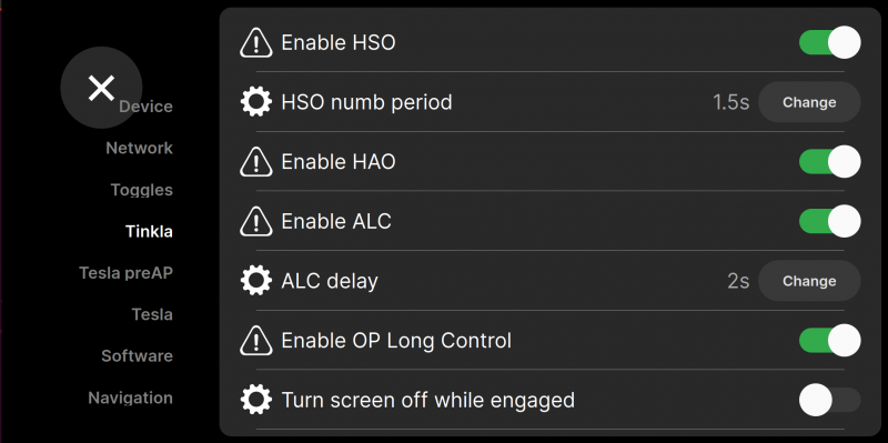 Tinkla specific settings for the Tesla Unity branch of OpenPilot (1/2)