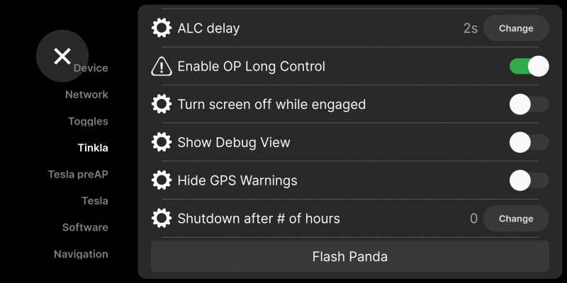 Tinkla specific settings for the Tesla Unity branch of OpenPilot (2/2)